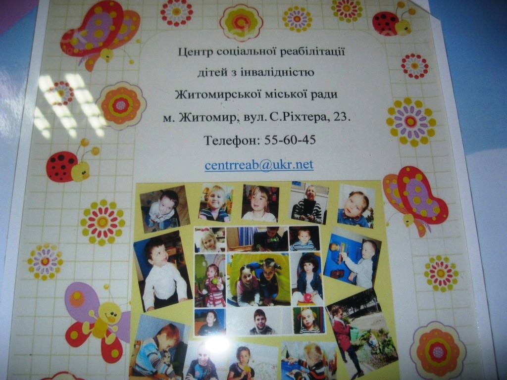Довідково: 22 травня 2017 року Центр соціальної реабілітації дітей-інвалідів Житомирської міської ради відзначив п’яту річницю від дня заснування. Близько половини підопічних Центру мають інвалідність «підгрупи А», це діти, які потребують постійного супроводу, підтримки. Центр розташований за адресою: вулиця Святослава Ріхтера, 23.