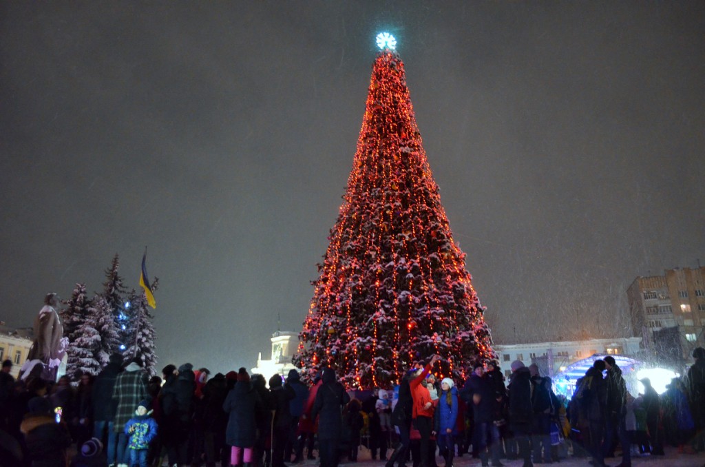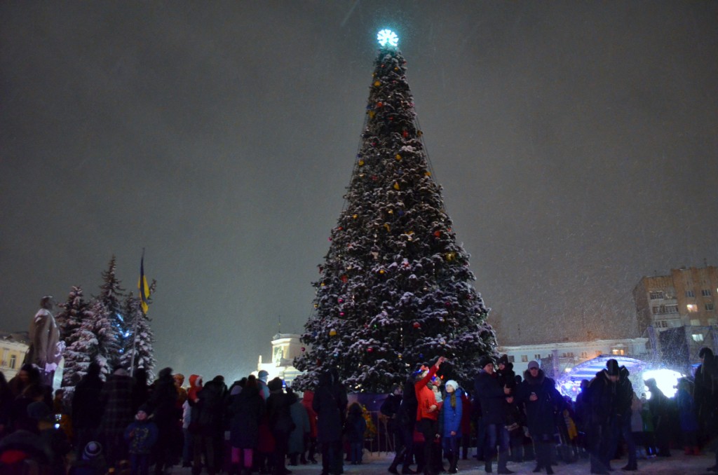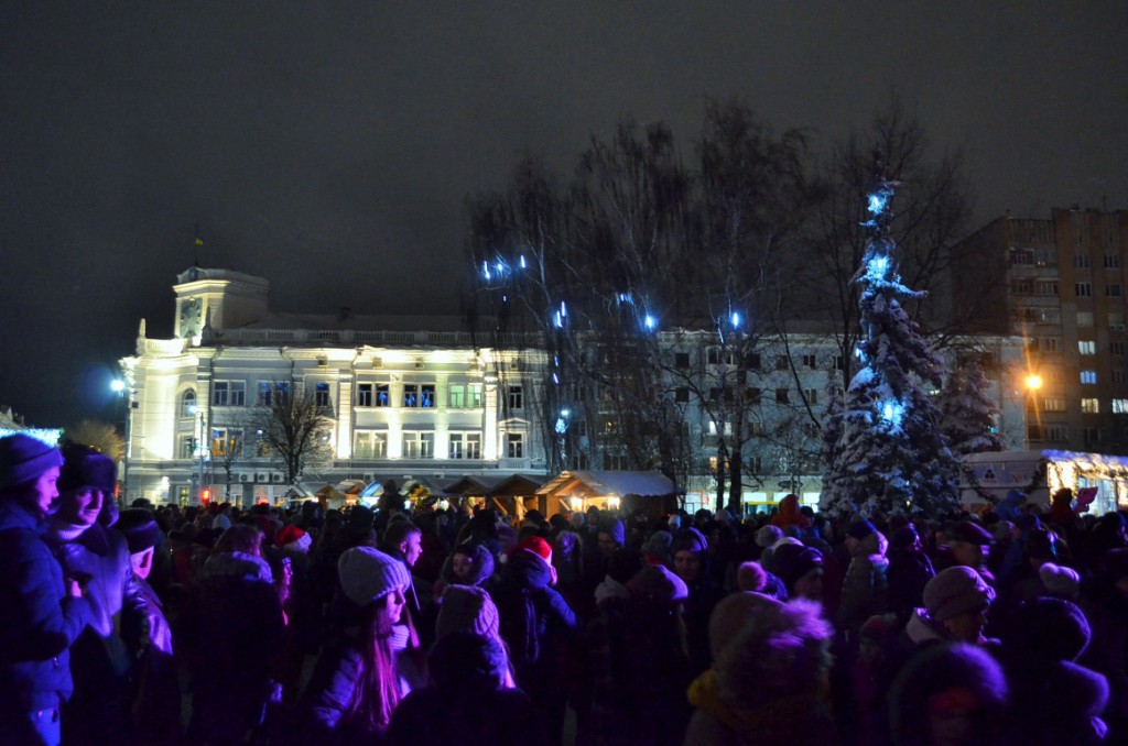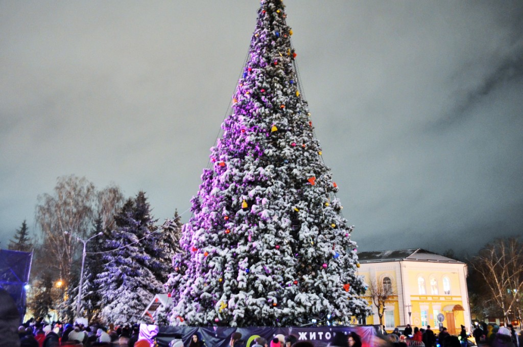 Житомиряни, які прийшли на урочисте запалення міської ялинки, хвилиною мовчання вшанували пам'ять загиблого військовослужбовця.