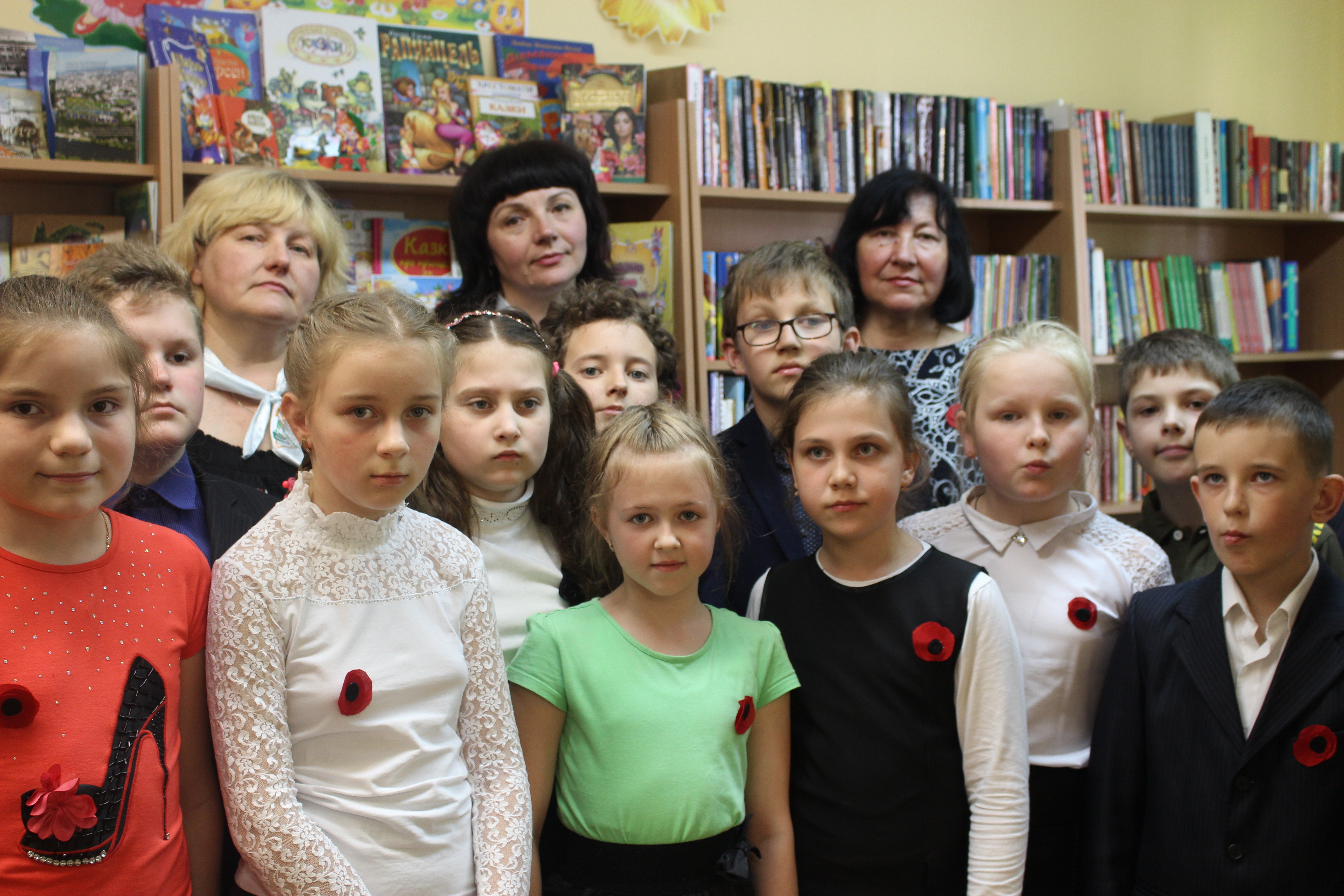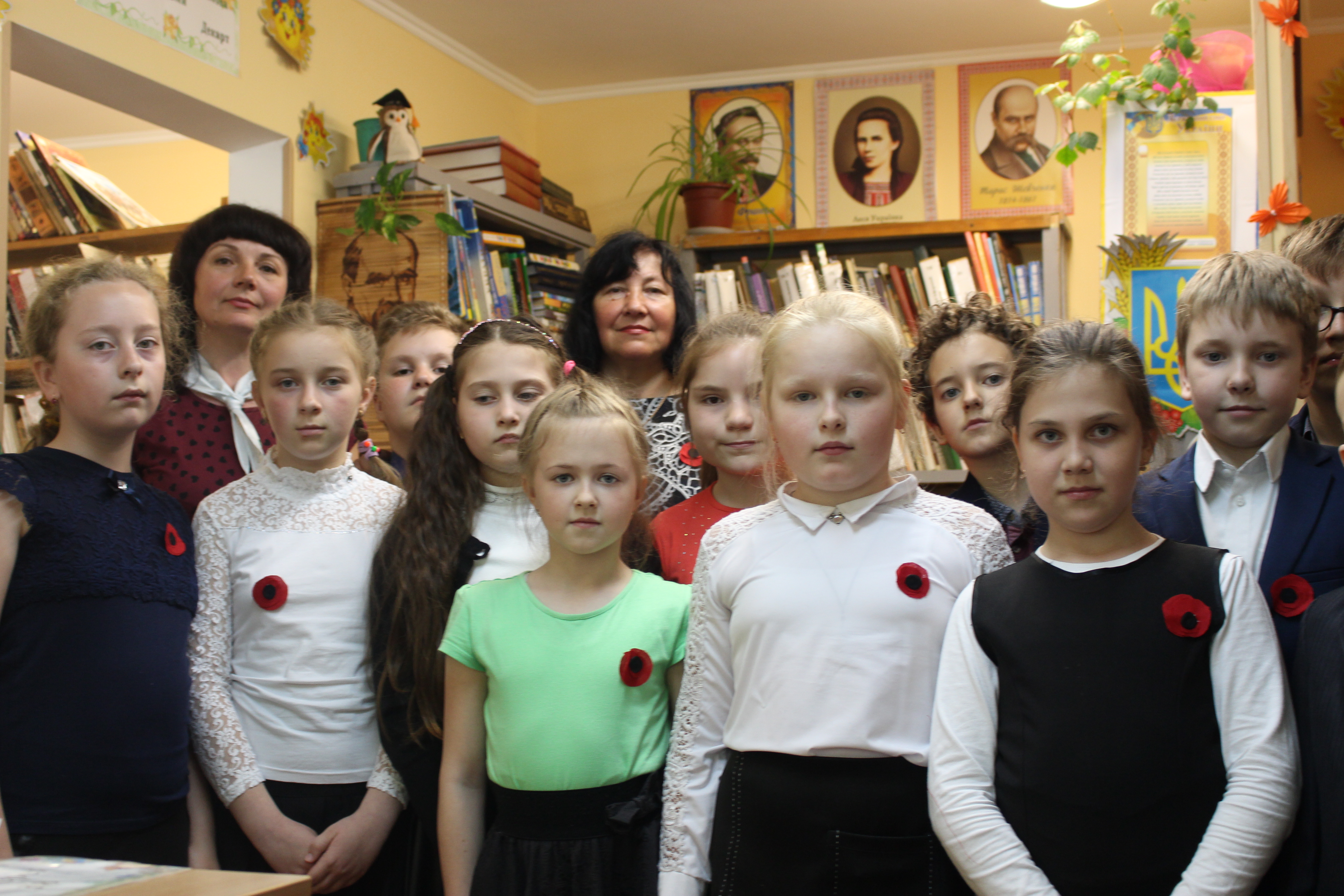 «Наш народ пам’ятає, яким лихом для українців була Друга світова війна, - сказала дітям завідуюча бібліотекою Н.С.Добровольська, - Тож пам’ятаймо: хто захищає свою землю - завжди перемагає. Ця пам’ять запорука того, що в майбутньому подібна трагедія не повториться».